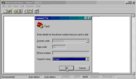 Enter a name for the new connection and select an icon, and then click OK. The Connect To box opens.