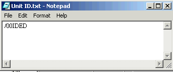 Open Notepad, enter the text /00IDED, press Enter, and save the file. This is the Get ID command, where 00 is the 'placeholder' for the controller's Unit ID number. 00 enables any directly controller to answer, no matter what it's actual ID number is. ED is the command's checksum.