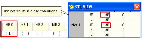 If a program exceeds this number, Error 1017 results. However, in certain cases, the actual compiled number of Rise/Fall elements is greater than the total that is shown in the Summary. Examples are shown below. Example 1Example 2