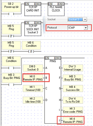 The PLC sends the data through this socket. Select a socket that is initialized to ICMP |