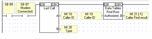 If the caller number is not in the list, the Find Row output, MI21, will contain -1,