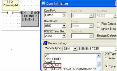 The Last Call Received function is located on the COM> COM Port> menu. This function enables a PLC to identify the caller number of an incoming call. Last Call uses the CLIP (Calling Line Identification and Presentation) feature offered by GSM modems.