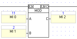 This Modulo function divides the A input by the B input, and then store the remainder in the C output.