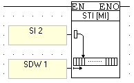 In the example below, SI2 contains the value 5 and SDW1 contains the value 10. Since the function type is Store Indirect MI, MI10 is where the value in SI2 will be stored.