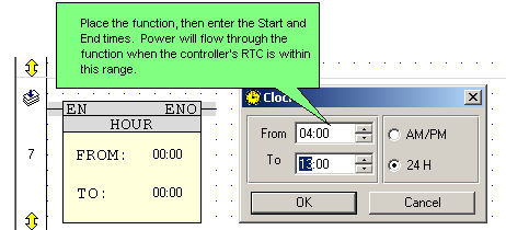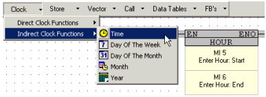 The Time function block is used for 24 hour time functions.