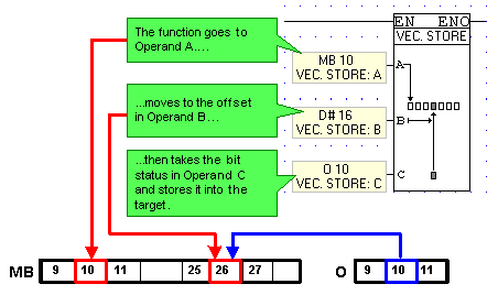 Link the desired Operands and Addresses. Operands A and B determine the location of the target operand. Operand A determines the starting point for the function. Operand B contains the offset value, and the operand linked to Operand C is the source operand.