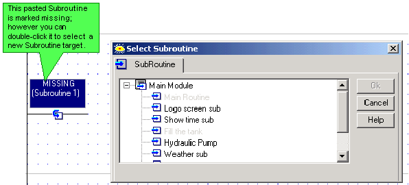 If the selection contains FBs, and no FBs of that type currently exist in the target project, the pasted FBs will be the version currently in VisiLogic FB library--in other words, if the source selection contains older FB versions, they are automatically updated during the Paste operation.