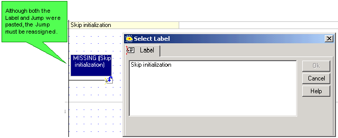 If you copy both Labels and Jump to Label, the Jumps will be marked as missing. Note that you can reassign the references.