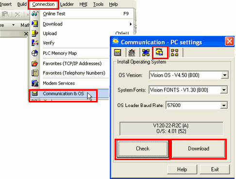 Open Connection>Communication & OS to open Vision Communication - PC Settings.