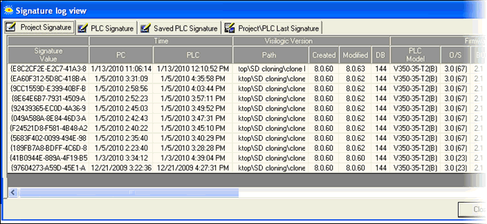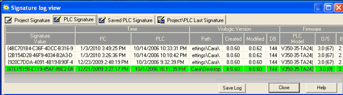 View Digital Signatures by clicking the View menu and selecting Show Signature Log. This project security feature can enable Vision PLCs to meet standards in niche industries such as pharmaceuticals. The log:
