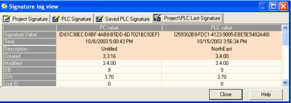 Compares the signature of the project to the signature of the last project that was downloaded to the PLC.
