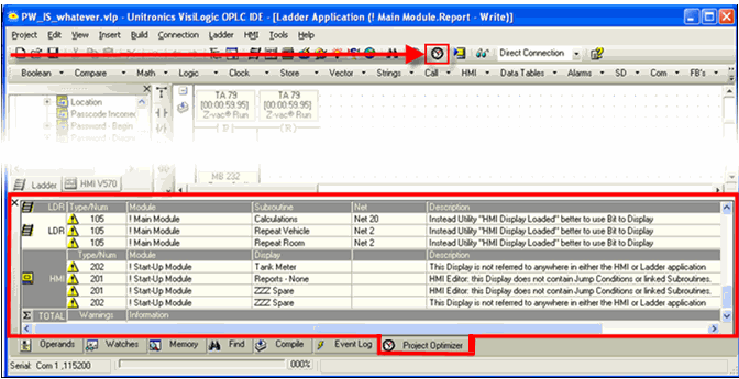 Run the Optimizer to view a list possible improvements that you can make in your project. In the results window, double click a line to jump to the appropriate location in the project.