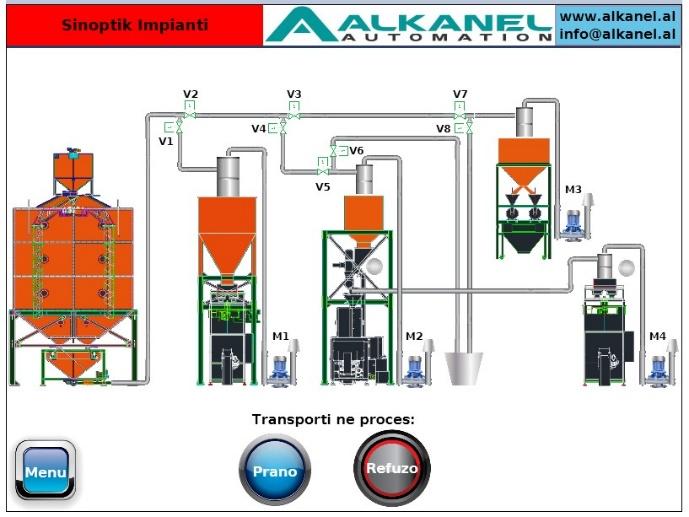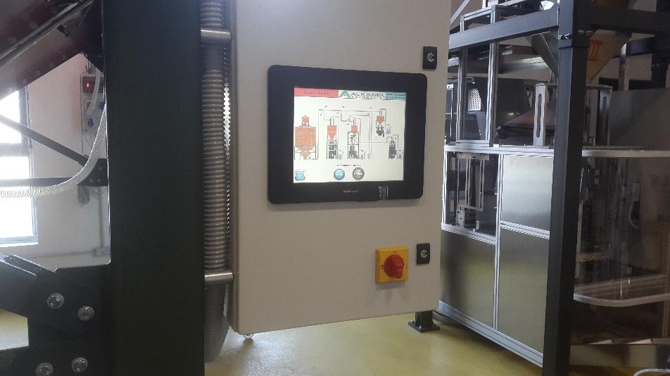 For a new project, Alkanel is developing software that works with a scale under the silos to track total weight delivered to each packaging machine (e.g., 1500 kg from Section 2 to Machine 3). The system memorizes discharged weight per cycle until each machine’s target quantity is reached.